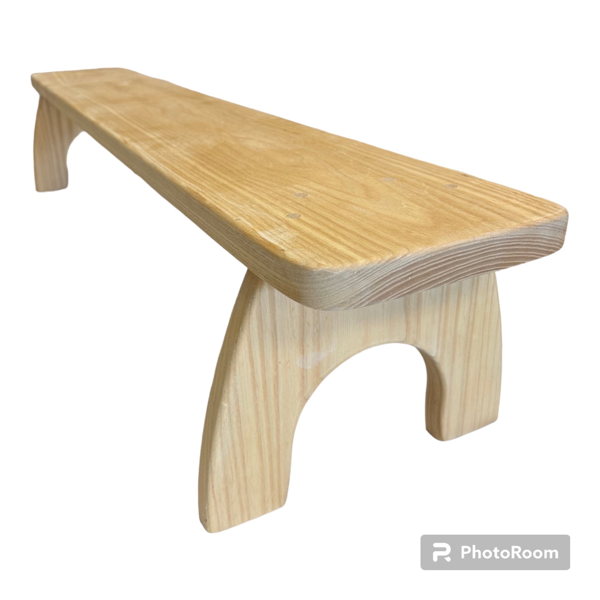 Bench can be used in primary or toddler rooms. Primary bench is 11" tall and 4' long. Toddler bench is 9” tall and 4’ long.
