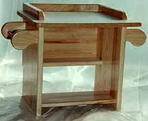 This stand serves as a "dry sink" to use a basin and pitcher and other accessories for the exercise of Hand Washing.