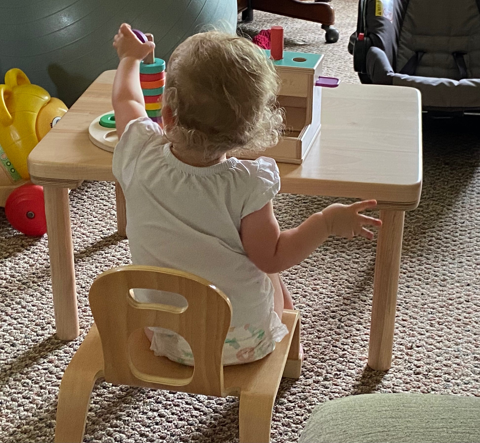 Ideal height for child to kneel or sit on a pillow for floor work. Choose between two sizes or select the set of nesting tables. Smaller table is great for primary or toddler rooms.
