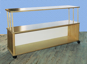 24" height & 4 ft length w/12" depth. For use in toddler or primary classrooms. White tile board backing and casters available for additional cost.